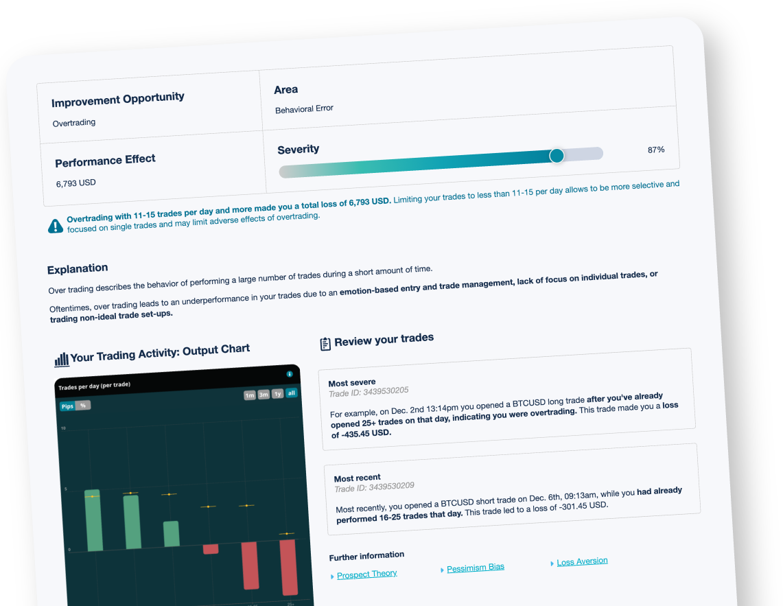 The First Behavioral AI to uncover personal trading strengths and improvement opportunities.